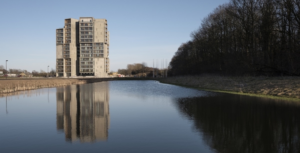 Het in 2015 gerealiseerde complex van architectenbureau C.F. Møller telt 250 studentenwoningen, verspreid over 3 aaneengesloten torens met ieder 15 verdiepingen. Door de gebouwen tegen elkaar aan te schuiven, is het geheel duidelijk herkenbaar op de campus vanaf iedere richting.