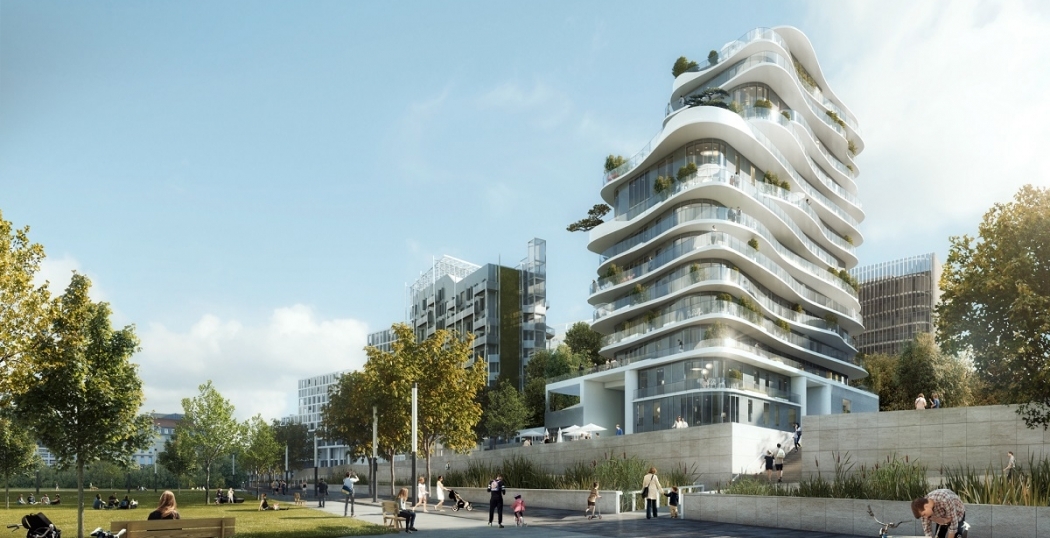 Impressie van UNIC, een nieuwe woontoren in Parijs. Door MAD Architects.