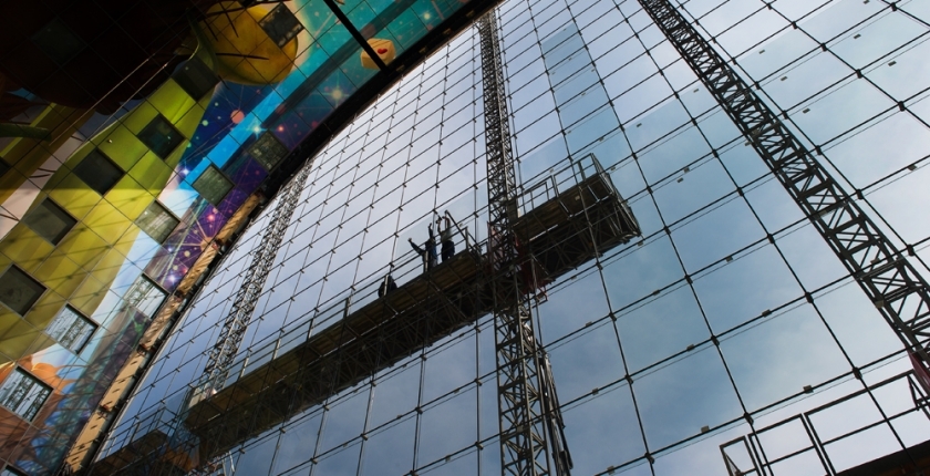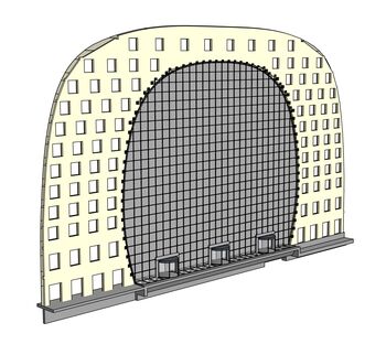 De Markthal in Rotterdam, een spectaculaire ontwerp van MVRDV en Royal HaskoningDHV heeft aan beide kopse kanten een transparante kabelnetgevel van 34 meter hoog en 42 meter breed. Dat is een record! Het zijn de grootste kabelnetgevels van Europa. Octatube uit Delft realiseerde deze glazen gevels.