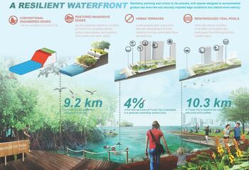 Onderdeel van de ‘symbiotische relatie’ is het beschermen en behouden van het aanwezige ecosysteem, dat door zo’n grootschalige bebouwing in gevaar komt. In het ontwerp is hier rekening mee gehouden door de natuurlijke kustecologie na te bootsen, compleet met mangrovebossen en ondiepe inhammen. Ook wordt rekening gehouden met oplossingen voor het stijgen van de zeespiegel.