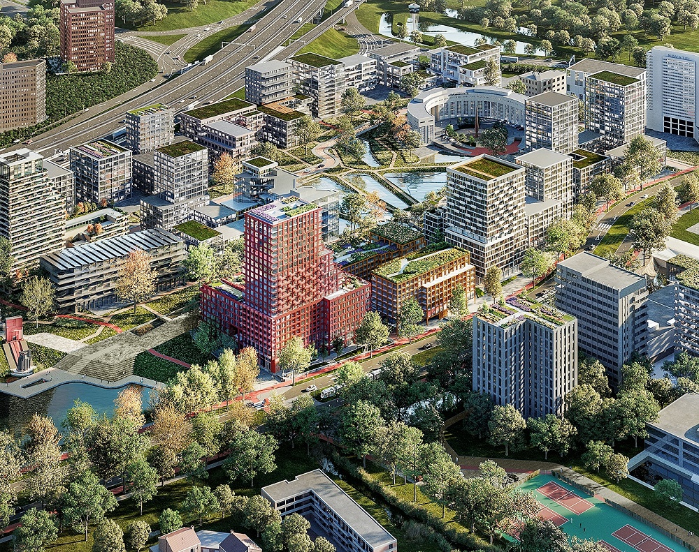 Voor kantoren en bedrijven blijft de huidige 90.000 m2 ruimte beschikbaar. En voor commerciële en maatschappelijke voorzieningen komt er op de begane grond van de woongebouwen en kantoren ruimte bij voor 45.000 m2. De gemeente gaat daarnaast de openbare ruimte herinrichten met aandacht voor groen en water. Het centraal gelegen park en de vijvers worden versterkt in kwaliteit. Hier omheen komen de nieuwe woon-werk-verblijf gebouwen.