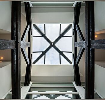 Opvallend is de hoeveelheid installaties die in het monumentale landgoed zijn verwerkt. In het hoofdhuis was geen structuur aanwezig om de nieuwe, moderne techniek in te passen; ventilatie, koeling, data, elektra – al deze installaties leggen een enorm beslag op het gebouw. Kanalen en schachten zijn in de vloeren en wanden ingeweven en geen leiding legt een rechte weg door het gebouw af.