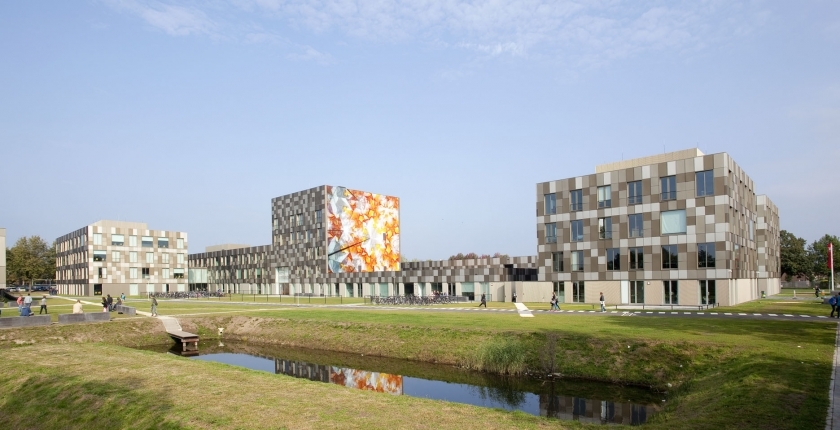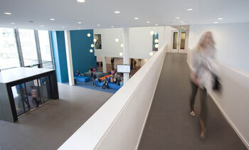 Zo’n groot gebouw waarin faciliteiten gedeeld worden door vijf verschillende scholen, moet natuurlijk wel een heldere verbindingsopzet hebben. Een centraal gelegen watervaltrap langs vides en spannende loopbruggen vormt een ware 'route architecturale' door het gebouw met zicht op veel kleur en lopend over het duurzame Marmoleum van Forbo Flooring, dat is gebruikt als vloer.