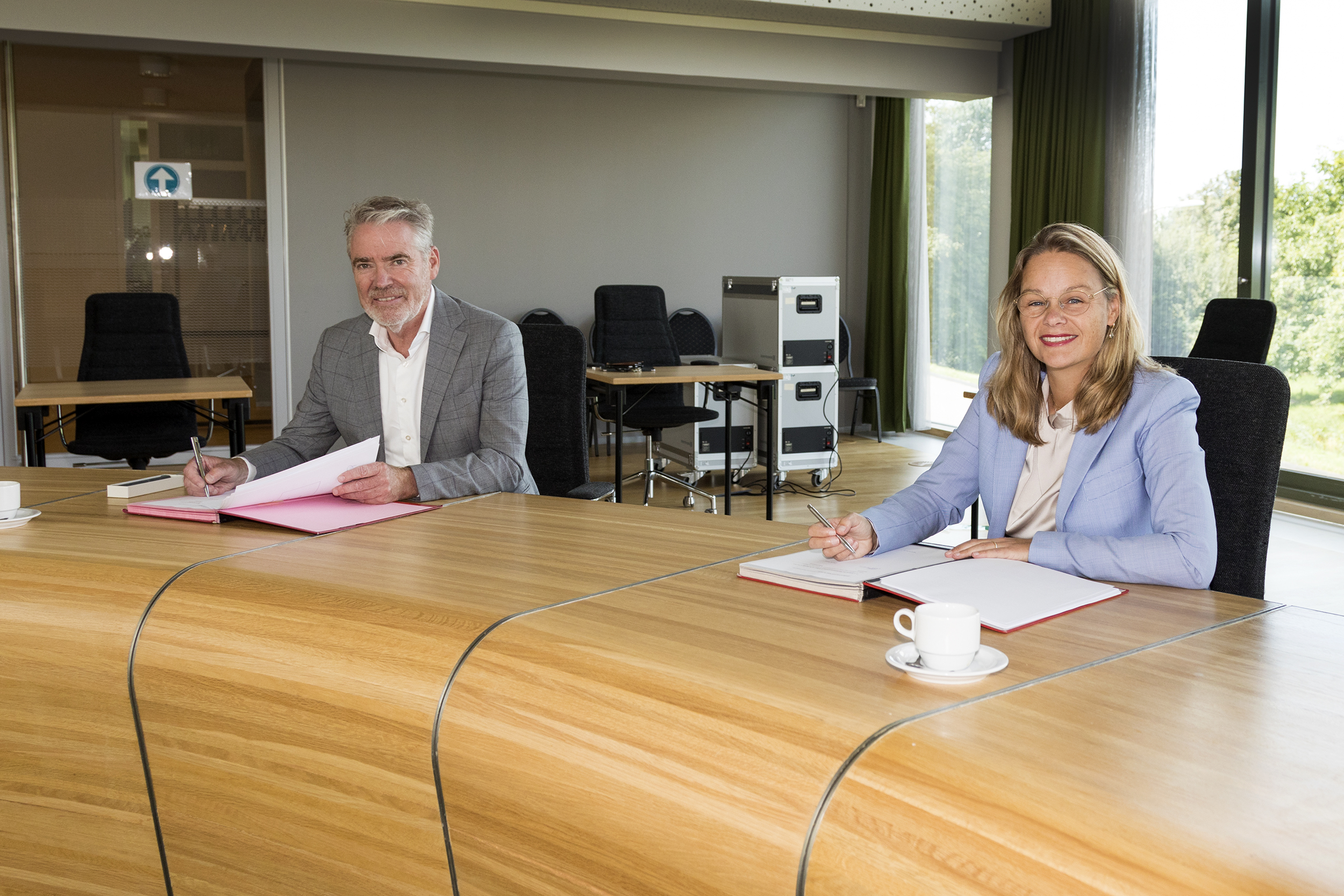 Wethouder Wendy Renzen en BPD-directeur Patrick Joosen tekenen de overeenkomst