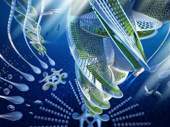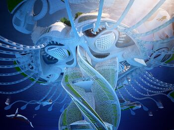 Rendering van de oceaankrabber Aequorea door Vincent Callebaut Architectures.