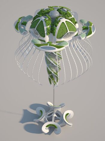 In een verhalend persbericht schetst de architect een toekomstbeeld van Aequorea, vernoemd naar de bioluminescerende kristalkwal die zijn eigen energie produceert. Deze vernoeming is niet voor niks; op de schetsen drijven de koloniën als enorme koepels op de oceaan, terwijl de spiraalvormige kern van de constructie tot 1.000 meter onderwater drijft en gestabiliseerd wordt door enorme tentakels.