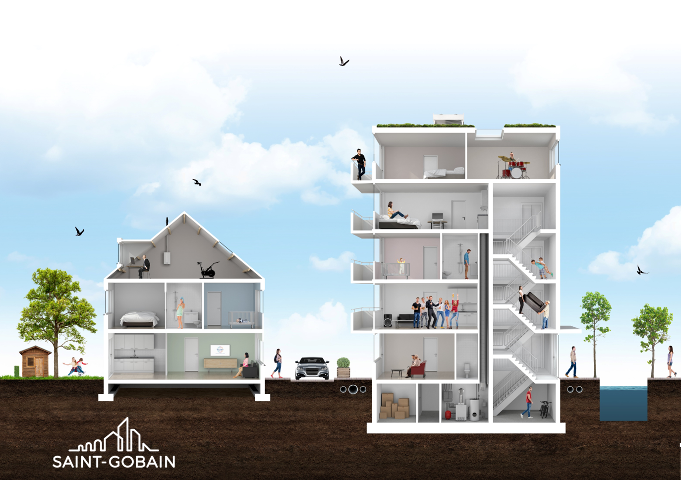 Saint-Gobain, producent van innovatieve oplossingen voor o.a. de gebouwschil en inbouw, maakt zich hard voor een integrale bouwsector. Daarvoor is het bedrijf een onderzoek gestart om te komen tot optimale modulaire scenario’s voor renovatie (kwaliteit verbeteren) en transformatie (aanpassen) van bestaande woningen. Stap één van dit onderzoek, in samenwerking met de sector, is reeds gezet.