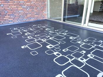 Een duurzame Triflex vloer aangepast naar uw eigen smaak en stijl? Met Triflex Creatieve Design geeft u uw balkon, terras, galerij of entree een creatieve en unieke look met een logo, persoonlijke tekst of een bijzonder patroon.