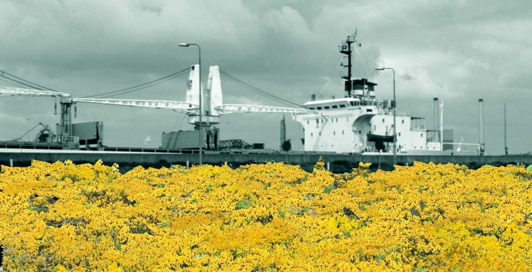 Fotomontage landschappelijke inpassing Zeesluis IJmond. Door: Bureau B+B stedebouw en landschapsarchitectuur.