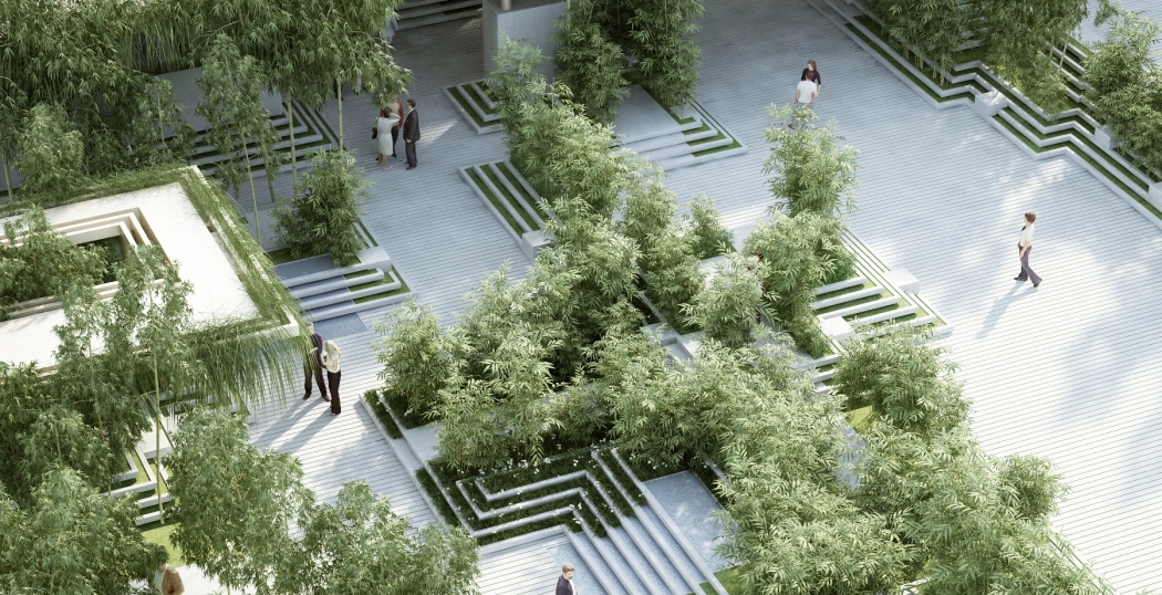 Het landschap zal onder andere baaien van bamboe, ingebouwde banken en waterdisplays bevatten. De treden die in het gehele landschap te vinden zijn, doen ook dienst als ingebouwde platenbakken waar kruiden en grassen in groeien. Op deze manier wordt een gemeenschappelijke tuin voor alle bewoners gecreëerd.