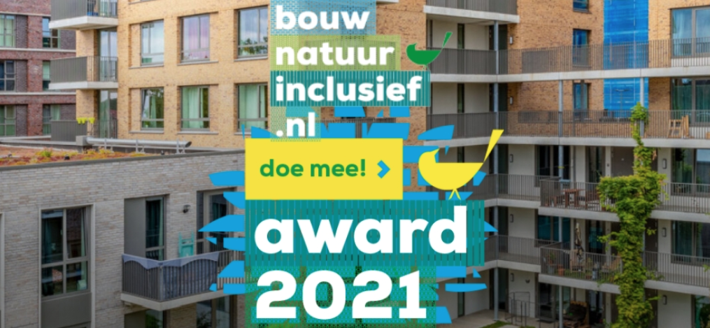 Acht inspirerende projecten dingen mee naar de Award Natuurinclusief Bouwen en Ontwerpen van Vogelbescherming Nederland en Zoogdiervereniging. Dit gebeurt in samenwerking met provincie Noord-Brabant, naast een landelijke prijs is er daarom ook een Brabantse prijswinnaar. Het doel van deze prijsvraag is om bouw-, verbouw- of renovatieprojecten te onderscheiden die aantoonbaar rekening houden met de behoeften van álle gebruikers van de stedelijke omgeving: mensen én dieren.
