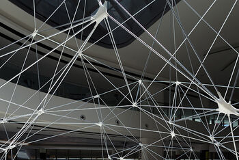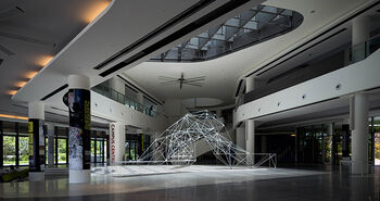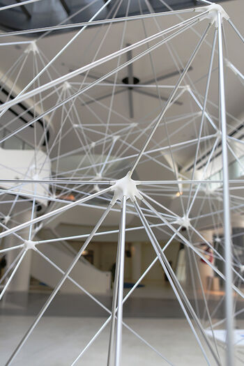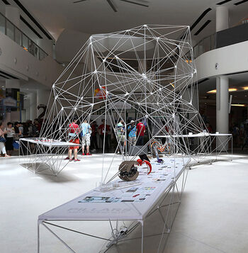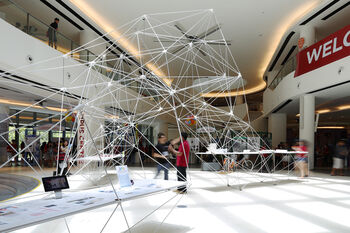 Professors Felix Raspall en Carlos Bañón van de Singapore Universitey of Technology and Design (SUTD) hebben voor de open dag van de universiteit een 14,5 meter lang paviljoen ontworpen, gemaakt van metaal en 3D-geprinte nylon knopen en aluminium staven.