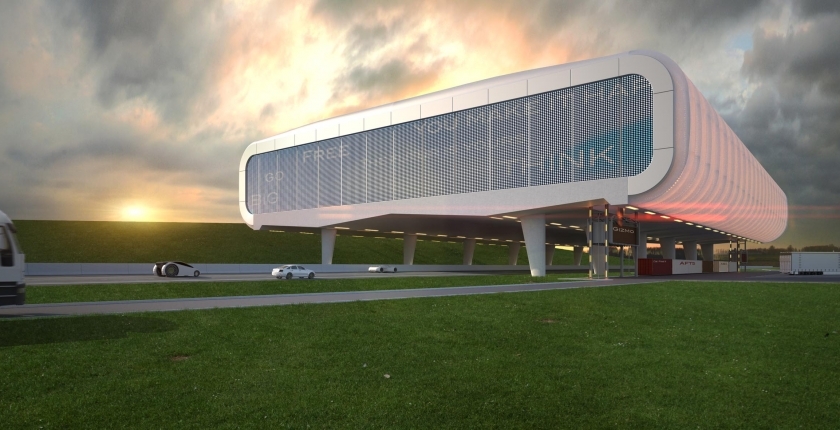 De winnende inzending gebouw én omgeving integreer had met een ontwerp, dat gebouw én omgeving integreert, een intelligent antwoord op het gebrek aan grond. Kruschina van Fluxo Interaktive Architektur en Sébastien Bernard zien het logistieke gebouw van de toekomst als een constructie boven een snelweg, met optimale transportverbindingen en het gebruik van innovatieve materialen zoals nanogel.