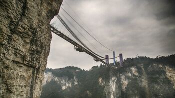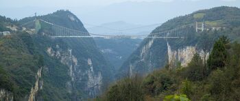 De brug nabij de stad Zhangjiajie in de Chinese Hunan provincie heeft een transparante glazen bodem en is 380 meter lang, 6 meter breed en hangt 300 meter boven de bodem van de Zhangjiajie vallei. Daarmee is het de langste en hoogste glazen brug ter wereld. Op de brug kunnen maximaal 800 mensen tegelijkertijd staan. Men kan bovendien vanaf de brug bungeejumpen.