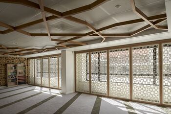 Louvres met Andalusische en Ottomaanse patronen trekken de ingezette lijn in het interieur ook door naar het exterieur. Zij dragen bij aan de veiligheid rond de openingen in de gevel én functioneren als zonwering voor een prettig binnenklimaat. Overdag valt het daglicht door de patronen heen naar binnen, ’s avonds zorgt de verlichting voor een lichtspel aan de buitenzijde.