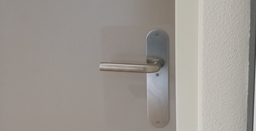 Het vermijden van dergelijke gevolgen door intensief gebruik van deurklinken en het gebied rondom de krukken kan eenvoudig met de smetplaat-laminaat A200 van Alprokon Aluminium. De plaat is vervaardigd van een helder kunststof laminaat met een glad oppervlak. Deze laag is bijzonder krasvast en na applicatie nauwelijks zichtbaar.