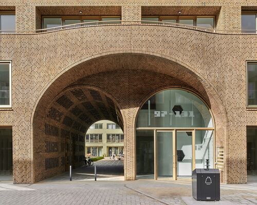 In de boogvormige poorten is reliëf in het baksteen toegepast door kunstenaar Martijn Sandberg. © Max Hart Nibbrig