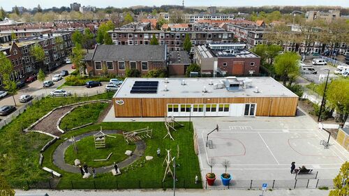 Het leerlingenbestand van IKC ’t Palet in Vlaardingen en hun schoolgebouw groeiden letterlijk uit hun jasje. Een naastgelegen buurtplein mocht worden ingericht als nieuwbouw en dependance voor de bovenbouw. Bij de inrichting van de buitenruimte van deze dependance was het belangrijk dat de functie als buurtplein bleef.