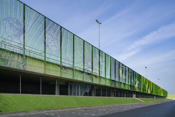 MoederscheimMoonen Architects ontwierp voor de Gemeente Schiedam een sportpark met accommodatie op een deel van de A4 tussen Delft en Schiedam. De sportvelden - die zich op zes meter hoogte boven op de snelweg A4 bevinden - worden omheind door één van de allergrootste canvassen van Europa. De architecten creëerden samen met Lace Fence maar liefst 8.500 m2 aan kleurrijk hekwerk bestaande uit meer dan 1,6 miljoen levensechte ‘pixels’.
