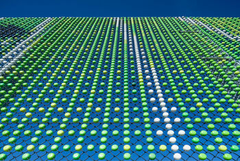 Rondom de velden is een scherm ontwikkeld dat niet alleen de veiligheid garandeert, maar ook de negatieve effecten van de wind wegneemt. Hiervoor werden de handen ineen geslagen met het bedrijf Lace Fence, bekend van haar innovatieve architectonische weefsels. Zij ontwikkelden een nieuw product bestaande uit kleurige ‘pixels’, genaamd ‘DeDots’. De pixels gaan veel verder dan een praktische oplossing, zij voorzien de omgeving van een nieuwe identiteit, waarbij elke m2 in het 1,2 kilometer lange scherm uniek is uitgevoerd. Er is een functioneel kunstwerk ontstaan met een spannende combinatie van transparantie, luchtdoorlatendheid en verbeeldingskracht dat alles samenbrengt waar het project om draait: natuur, sport, verbinding en energie.