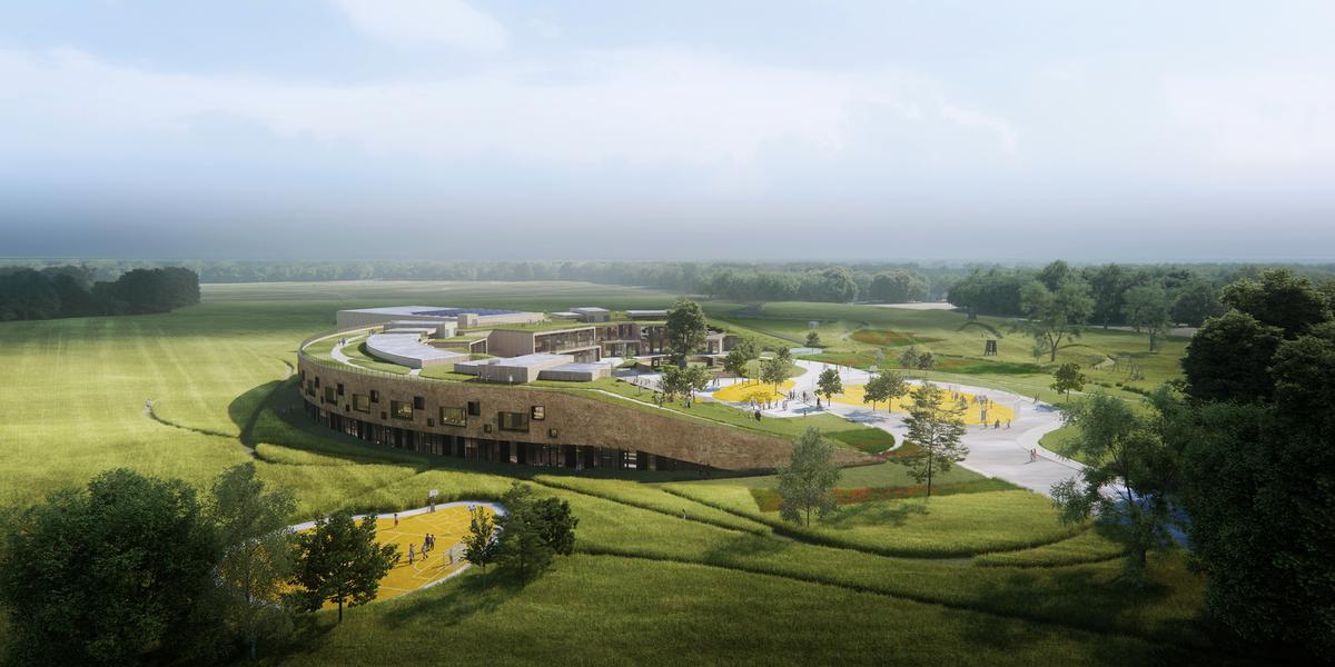"We hebben een school ontworpen dat het midden vindt tussen leren en landschap en waar leren niet alleen plaatsvindt in het gebouw, maar in de hele route van en naar de school en in de manier waarop de school verbonden gaat zijn met de lokale gemeenschap", vertelt Eva Ravnborg, partner bij architectenbureau Henning Larsen.