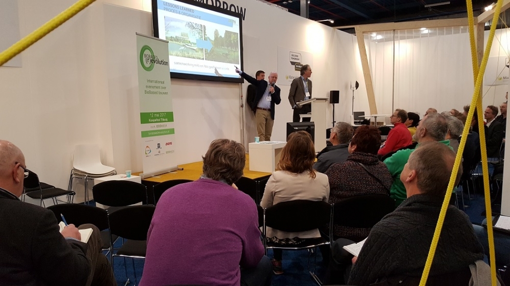 De lezing over biobased bouwen tijdens de Bouwbeurs was drukbezocht.