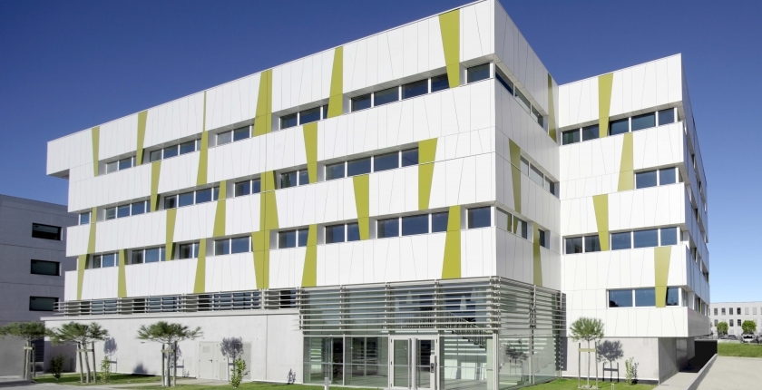 Fahrenheit-gebouw, gelegen in het bedrijvenpark 'Hippocrate' in het oosten van Montpellier.