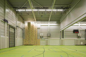 Zowel in het exterieur, maar vooral in het interieur, is het kleurgebruik met recht ‘Zaans’ te noemen. Het interieur is geïnspireerd op het frisgroene omliggende slagenlandschap dat zo kenmerkend is voor de Zaanstreek. De kleuren zorgen voor de verbinding tussen de verschillende verdiepingen en geven het geheel een dynamisch en sportief karakter. In de entreehal vinden kleur, ruimte en vorm haar climax in een open en uitnodigende sfeer waar sporters, studenten en toeschouwers samenkomen