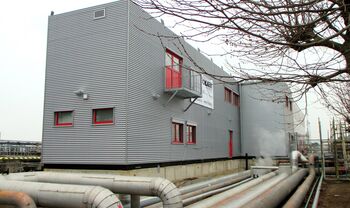 Het gebouw is volledig afgebouwd op het bedrijfsterrein van Touax in Moerdijk, omdat de vraag van de opdrachtgever was om een kantoorpand ‘turnkey’ en liefst als één element aan te leveren op hun bedrijfsterrein en wel compleet geïnstalleerd en gestoffeerd. Een andere eis was een zo kort mogelijke installatietijd van het gebouw ter plaatse. Touax bouwde het 220m² grote kantoorpand van twee bouwlagen op haar eigen bedrijfsterrein in Moerdijk. Het gebouw met een afmeting van 25m x 7,5m en 7m hoog bestaat uit 20 units, verdeeld in 2 blokken van 14 en 6 units.