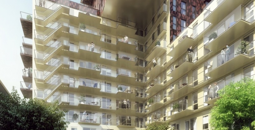 Dit bijzondere project is ontworpen door Mei architecten uit Rotterdam, Pieters Bouwtechniek in Delft is de hoofdconstructeur. Alle Hi-Con elementen worden in een ivoorkleur uitgevoerd. Nieuw voor dit project is dat alle balkons worden verankerd aan de vloerconstructie met Schöck Isokorf. De detaillering van de balkons is hier speciaal op aangepast. Tijdens de ontwikkeling van de balkons werd al duidelijk dat met deze uitkraging geen traditionele balkons mogelijk waren, hier was de achterliggende vloerconstructie niet voor geschikt, Hi-Con bood de mogelijkheid om met een superslanke balkonplaat dit wél te realiseren. De eerste levering is gepland voor begin 2015.