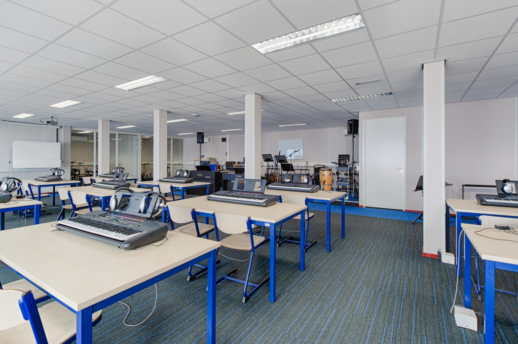 Elk gebouw is uniek in zijn vorm en uitstraling. U beslist zelf wat u nodig heeft. Zo plaatste Christelijke Scholengemeenschap De Lage Waard naast hun bestaande gebouw een tijdelijk muzieklokaal, met een eigen podium, geluidswerende voorzieningen en privéstudio’s. Deze kon door de modulaire bouwwijze gemakkelijk aan het gebouw worden vastgezet.