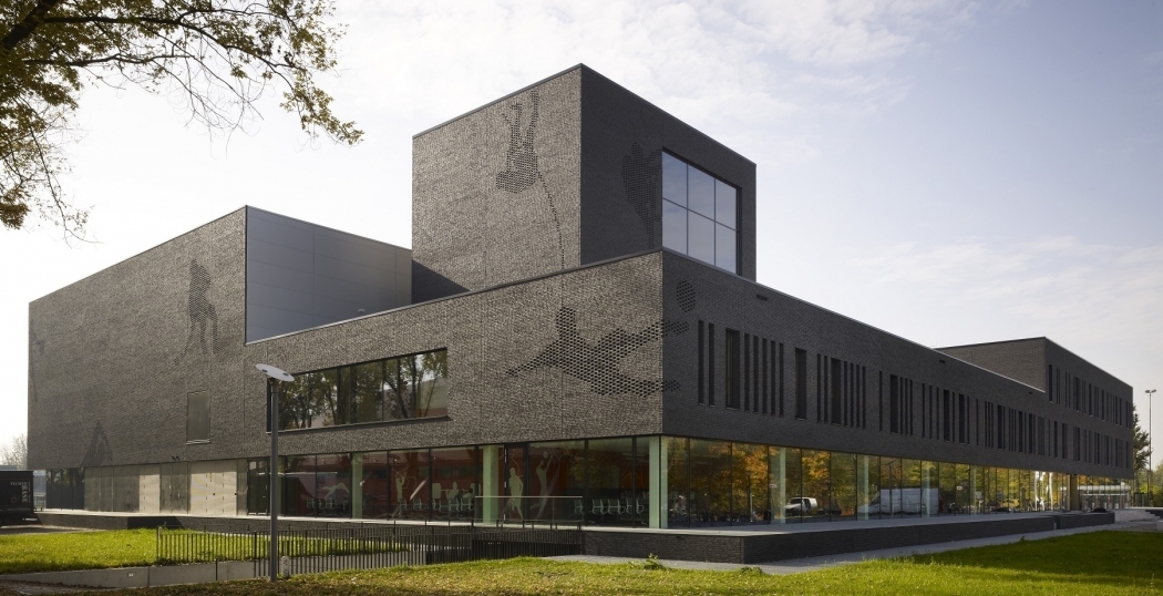 Fontys sporthogeschool Eindhoven exterieur en interieur (foto rechtsonder). Fotografie: Christian Richters