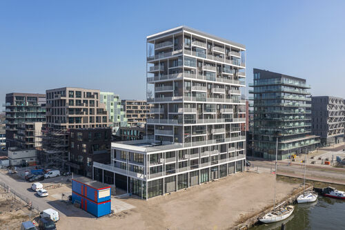 “We hebben rekening gehouden met verregaande flexibiliteit, een idee dat meegenomen is in de afmetingen van de woningen”, vertelt Gipser. “De plafonds zijn rond de 2,90 meter hoog en over de breedte zijn er 6 beuken van elk 4,80 meter. In die zes beuken is een vrije indeling mogelijk. Intussen is dat opgedeeld in de appartementen, maar ruimtelijk en technisch gezien is de toren voorbereid op transformatie.” Heutink voegt toe: “De bewoners konden individueel bepalen wat hun gewenste appartementsgrootte moest worden, bijvoorbeeld een appartement of dubbelhoge loft. Daarnaast hebben ze gekozen voor een gemeenschappelijke ruimte met diverse faciliteiten, zoals een gezamenlijk ruimte met fitness en sauna, en voor een dakterras die wordt ingericht als (moes)tuin.”