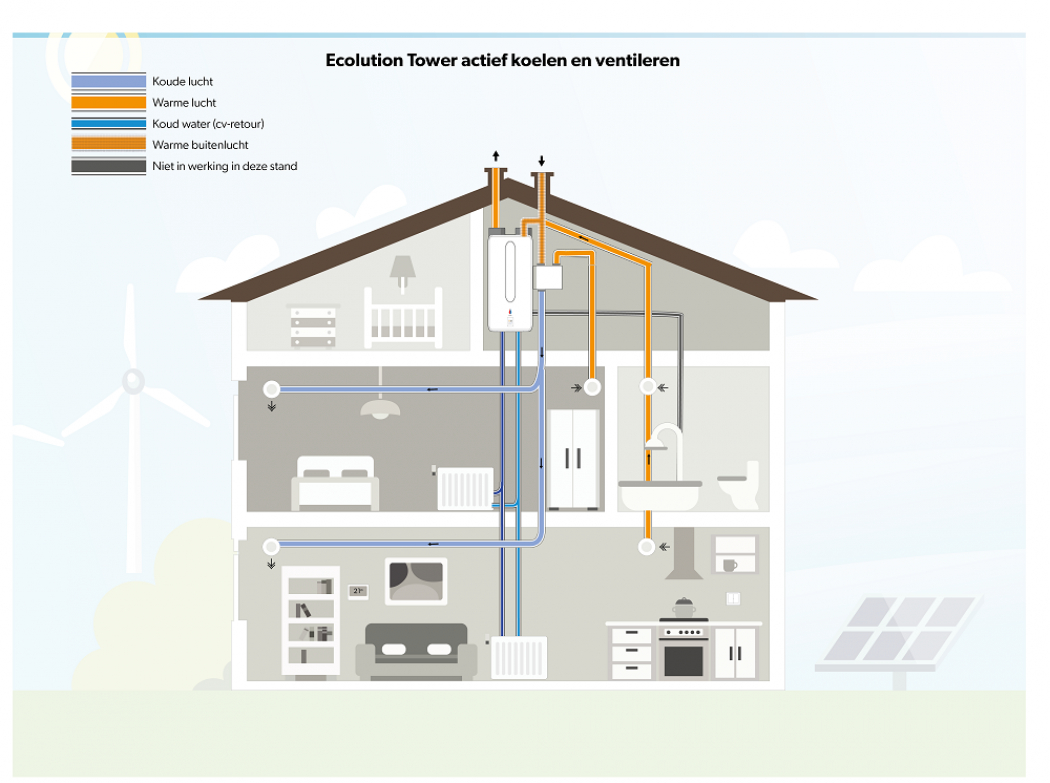 De Ecolution Tower ventilatiewarmtepomp: ventileren, verwarmen én actief koelen