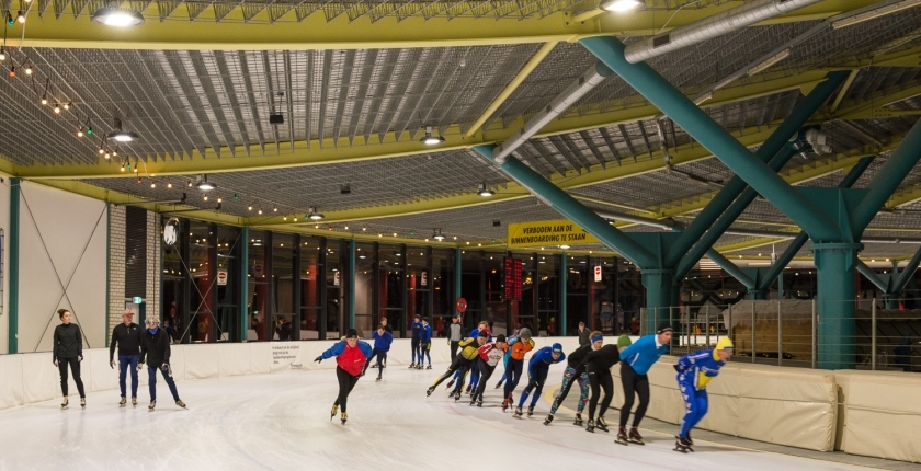 Recreanten schaatsen onder sterk gedimde en sfeervolle verlichting, terwijl schaatsverenigingen hun trainingsrondjes afleggen onder half gedimde Led armaturen. Bij wedstrijden branden de Leds de volle 100%.