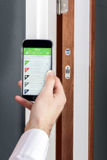 GND heeft een speciaal QR-code label ontwikkeld, dat u aan de scharnierzijde van de deur vindt. Door dit label met de smartphone en gratis #GNDdeurscanner app te scannen wordt weergegeven of de deur voldoet aan de eis Sa (koude rook), S200 (warme rook) of geen kwalificatie heeft. Bovendien is aan de hand van het label te zien hoe de deur is geleverd, wie verantwoordelijk is voor de verschillende werkzaamheden bij het proces van plaatsen en controleren en welke prestaties de deur of deur/kozijn-combinatie levert. Met een GND-label kunt u dus eenvoudig de veiligheid en prestaties van de deur controleren.